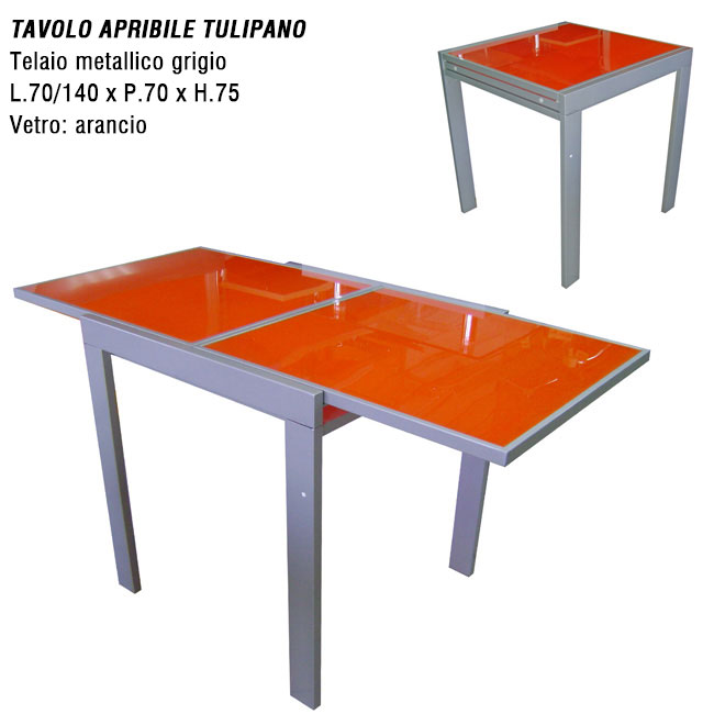 Tavolo apribile in vetro temperato arancio e telaio metallico grigio alluminio