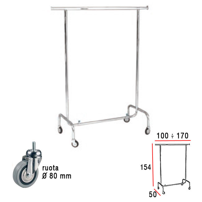 Stender semplice con barra estensibile e con ruote diametro 80 mm