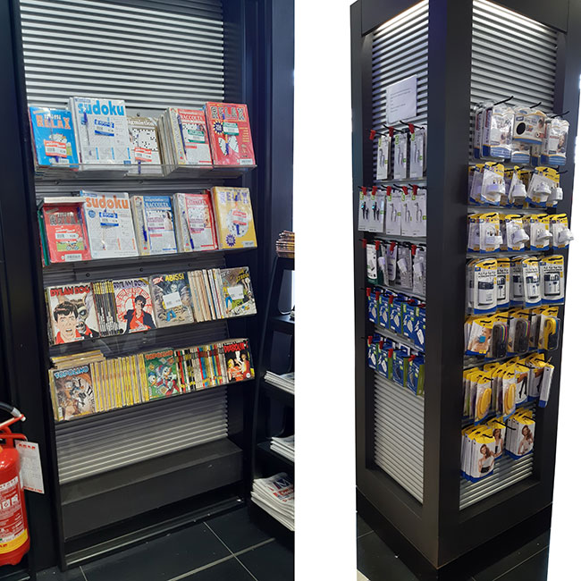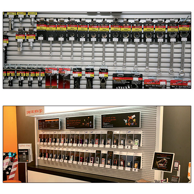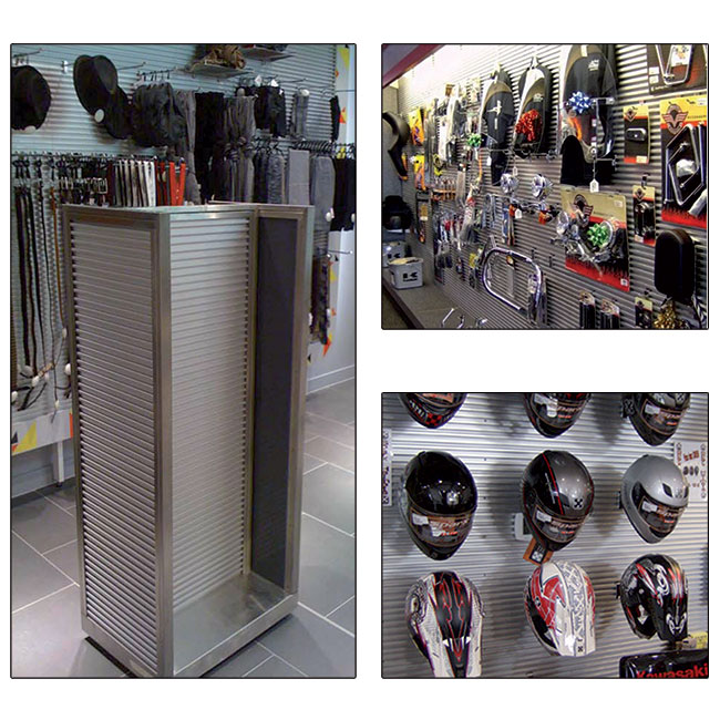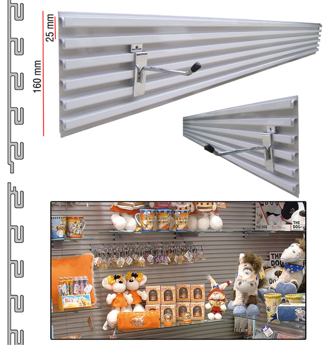 Il pannello dogato che così si compone ha un passo verticale del binario per inserire gli accessori di 25 mm