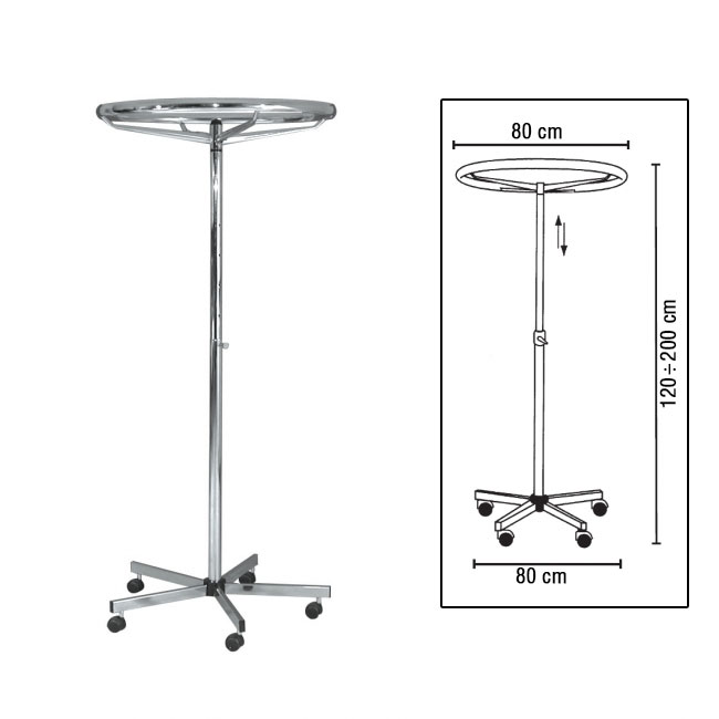 Stender circolare ad un solo cerchio diam. 80 cm mm rotante su anello in nylon con ruote diam. 50 mm.
