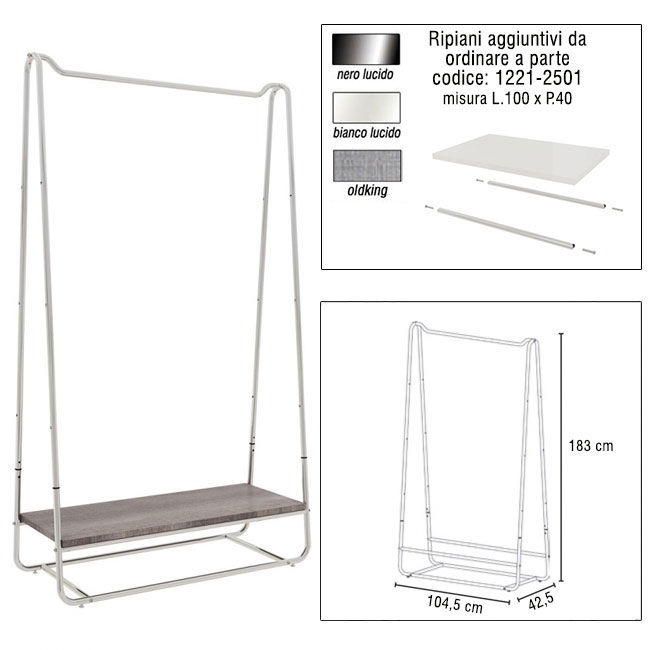 E' possibile aggiungere altre mensole ordinando il kit cod.1221-2501 composto dalla coppia di barre di sostegno e il piano