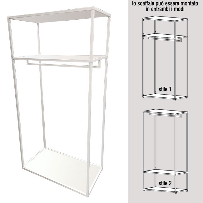 - oppure con il secondo piano a 40 cm da terra e il tubo appenderia in alto (stile 2)