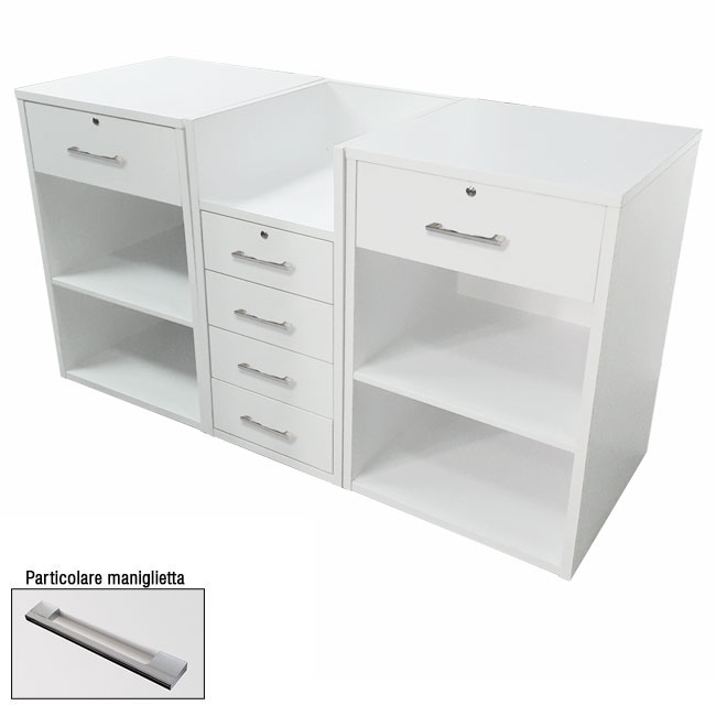 Il banco cassa ha 4 cassetti posteriori di cui 1 con serratura