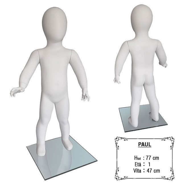 Manichino bimbo 1 anno testa uovo in vetroresina modello "PAUL"