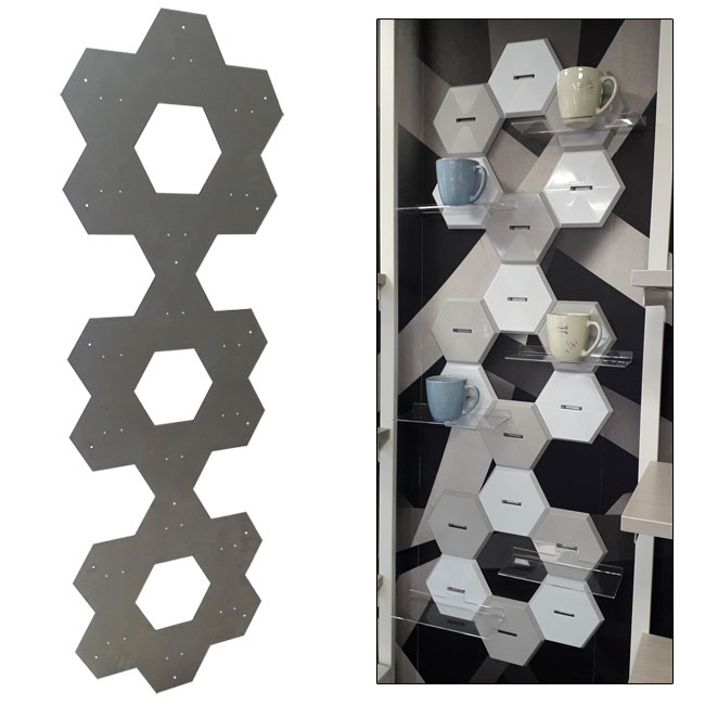 Per semplificare e velocizzare le operazioni di montaggio possiamo realizzare delle lamiere sagomate secondo lo schema della composizione di mattonelle da assemblare. Grazie alle preforature sulla dima in corrispondenza delle viti delle mattonelle, tutta l’operazione potrà essere eseguita in pochi minuti e con un risultato perfetto!