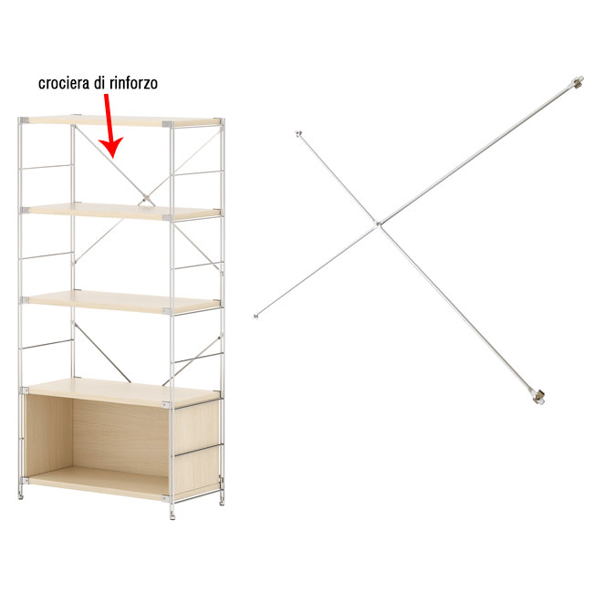 N.B. Con gli scaffali H.190 cm usare 2 crociere di rinforzo a modulo