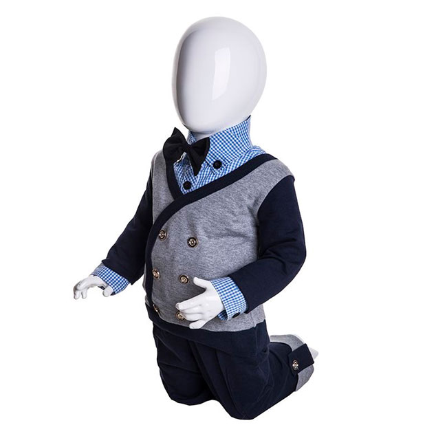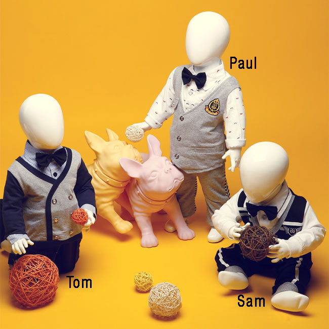 Manichino infante in ginocchio testa uovo in vetroresina modello "TOM"