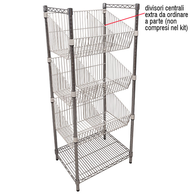 Kit composto da base e 3 ceste a bocca di lupo