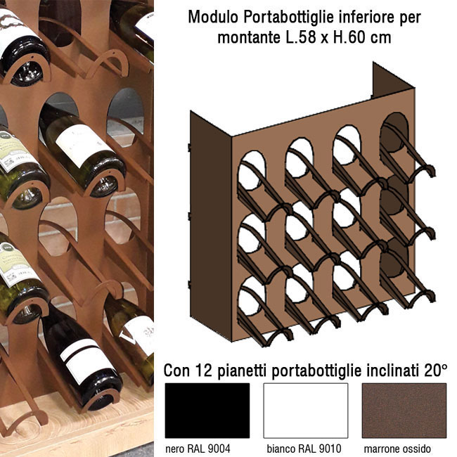 Modulo Portabottiglie inferiore in lamiera completo di pianetti con aggancio al montante