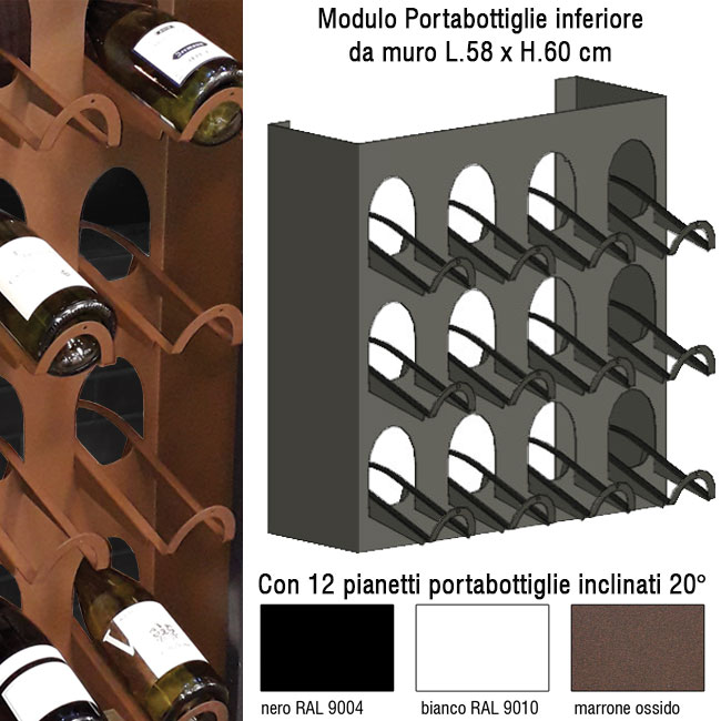 Modulo Portabottiglie inferiore in lamiera completo di pianetti da fissare al muro