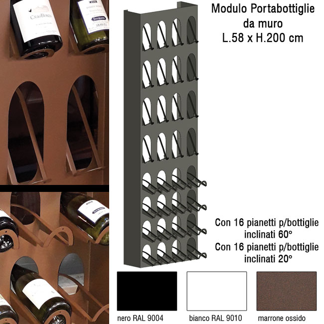 Modulo Portabottiglie in lamiera completo di pianetti da fissare al muro