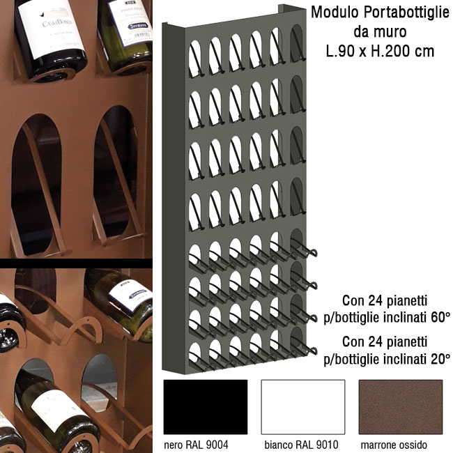 Modulo Portabottiglie in lamiera completo di pianetti da fissare al muro