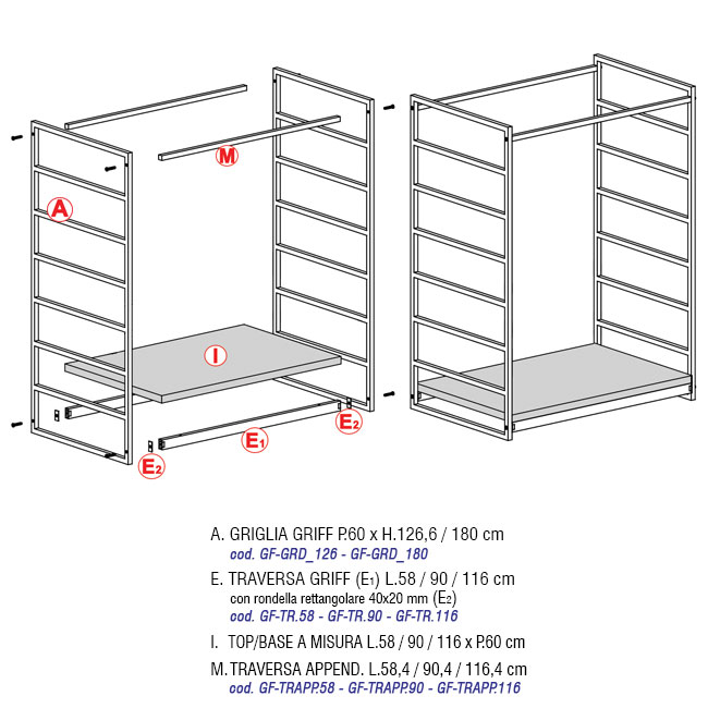 - n.2 Griglia Griff ................ P.60 x H.126,6 cm ............ cod. GF-GRD_126 (bianco opaco 9010 o nero opaco 9004)
