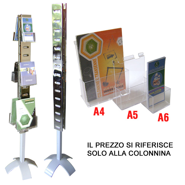 Ai montanti dogati è possibile fissare gli accessori del sistema dogato. In particolare per usare la colonnina come porta cataloghi ordinare a parte i porta cataloghi in plexiglass per dogato formato A4 / A5 / A6