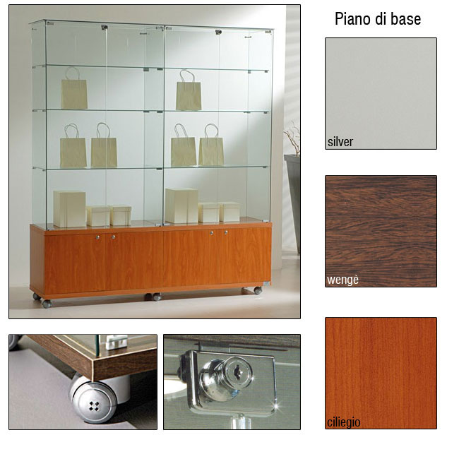 Vetrina h.180 cm con mobiletto e top cristallo made in Italy