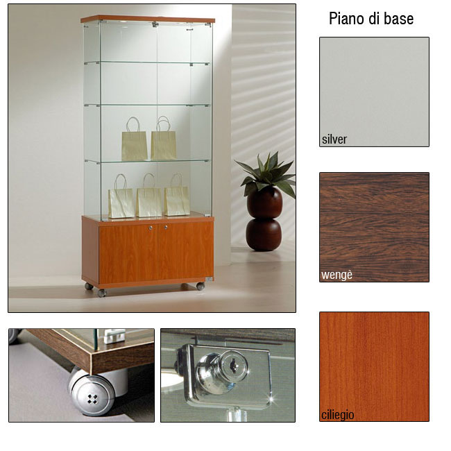 Vetrina h.181 cm con 3 faretti LED e mobiletto made in Italy