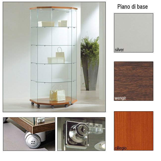 Vetrina h.181 cm trapezioidale con 3 faretti LED made in Italy
