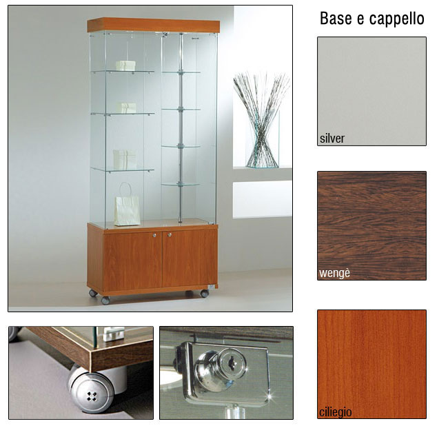 Vetrina h.187 cm metà con piani fissi e metà girevoli con 3 faretti LED e mobiletto made in Italy