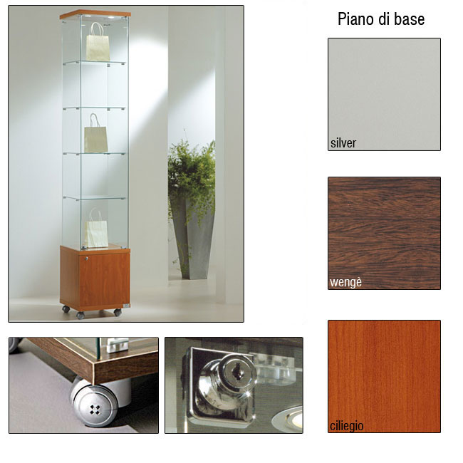 Vetrina h.220 cm con 2 faretti LED e mobiletto made in Italy